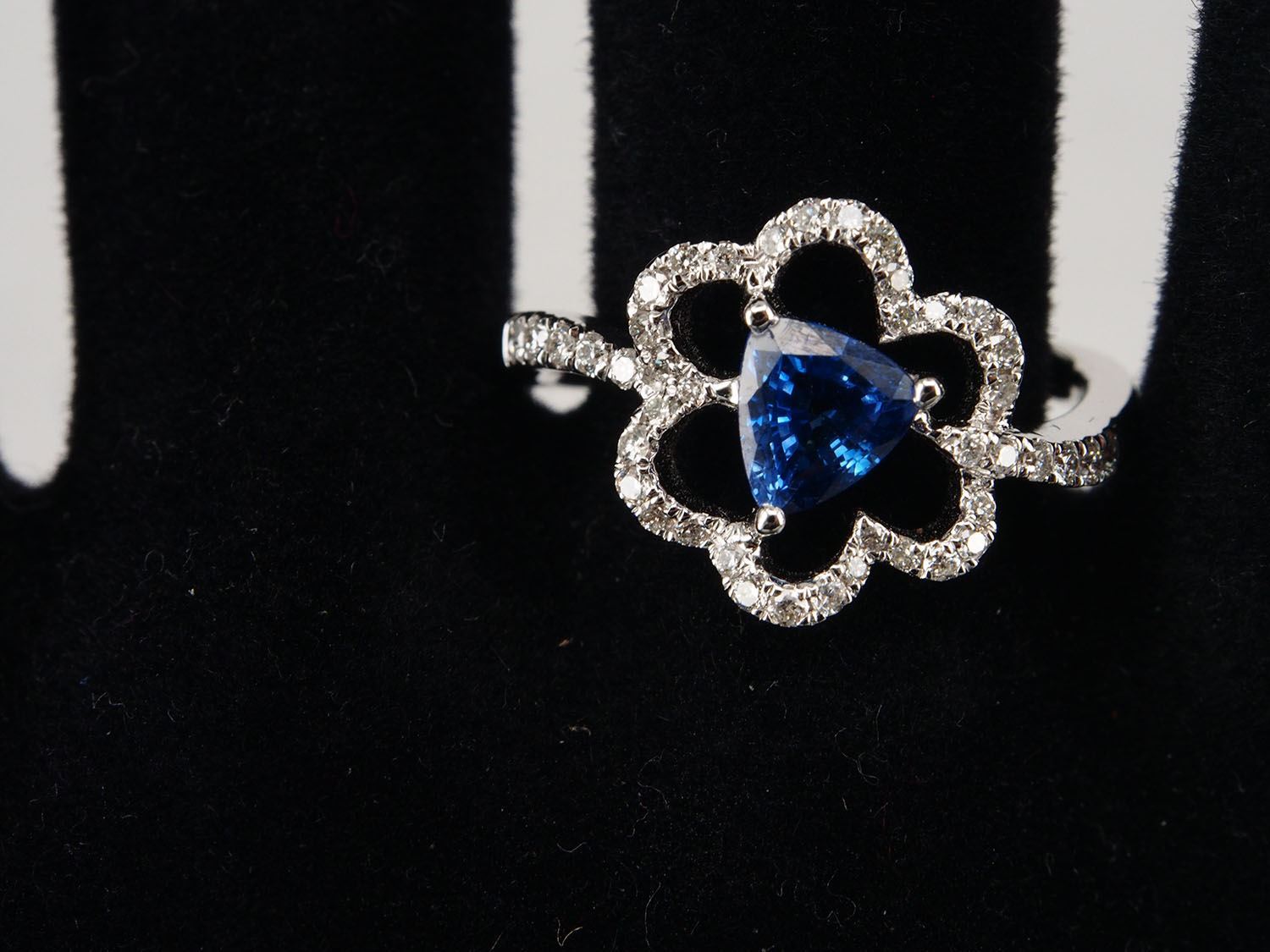 18K金3.52g, 42粒圓鑽0.27卡, 1粒籃寶0.88卡