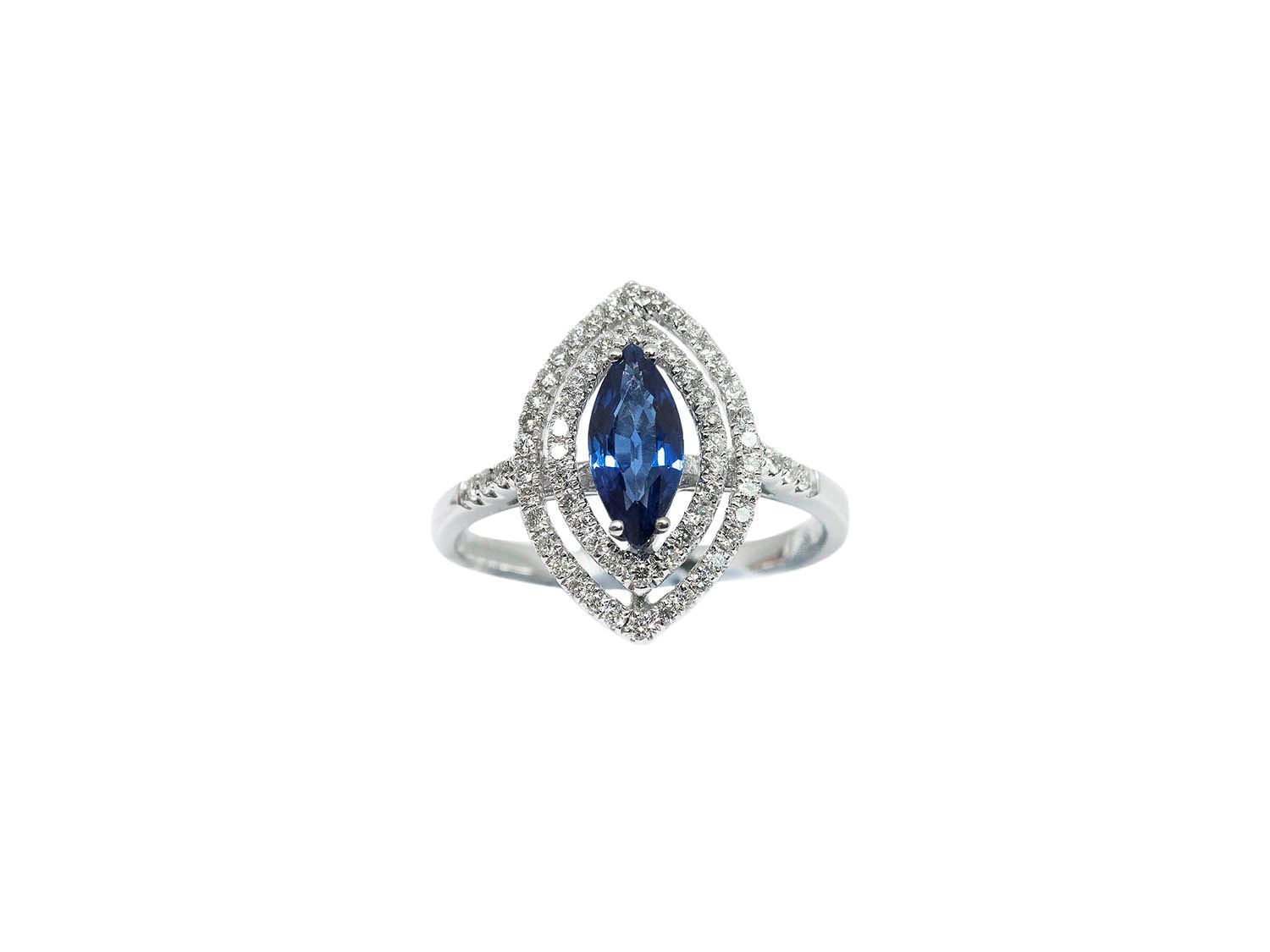 18K金3.34g, 64粒圓鑽0.35卡, 1粒籃寶0.93卡