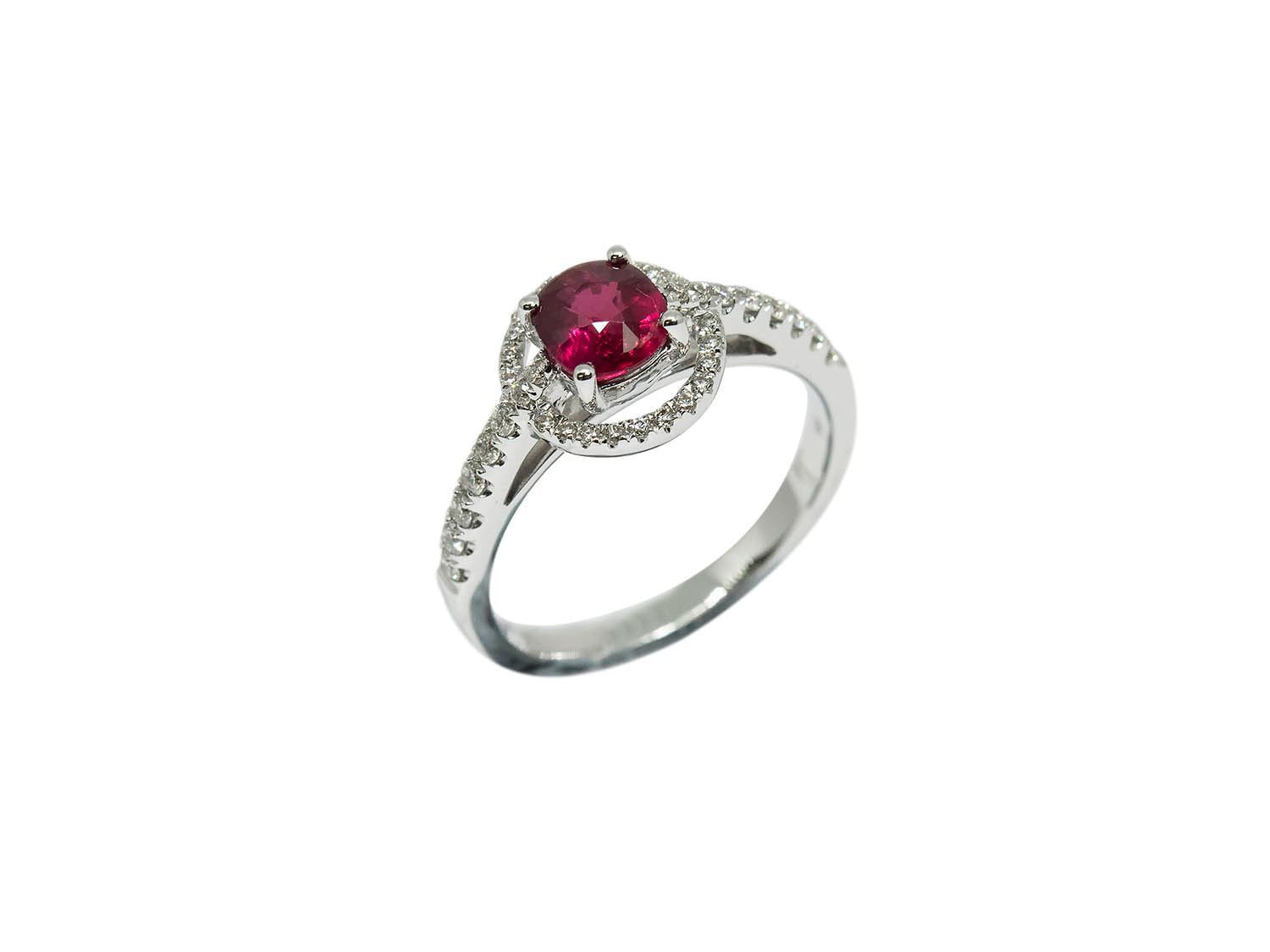 18K金3.60g, 38粒圓鑽0.30卡, 1粒紅寶1.01卡